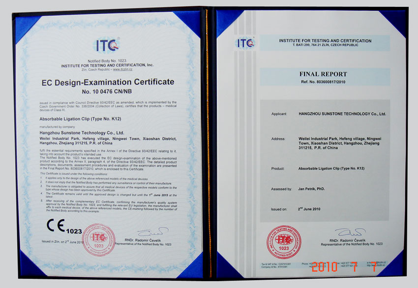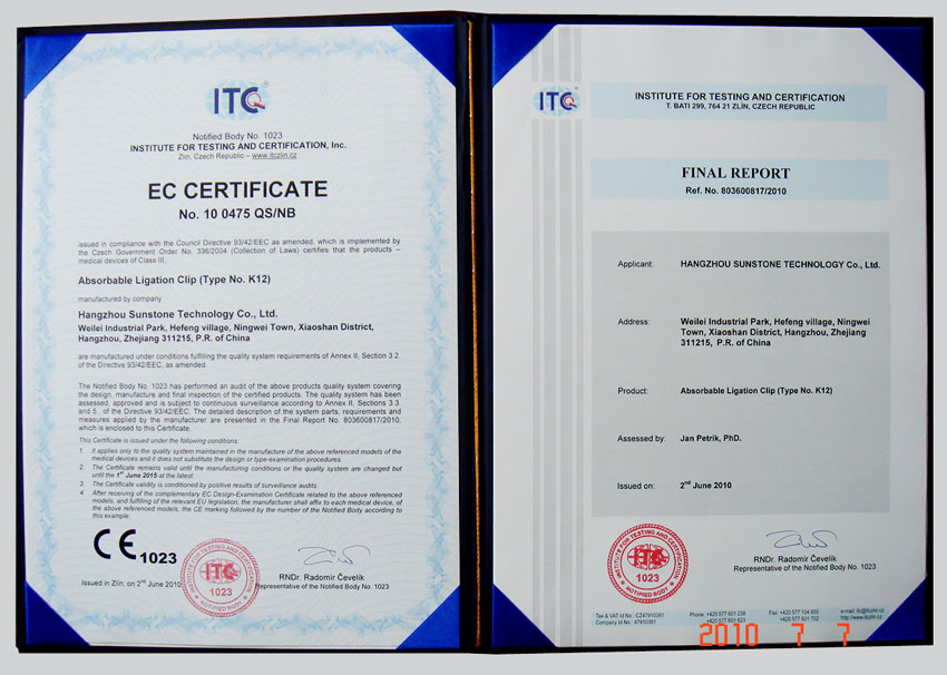 上述證書的獲得,標(biāo)致著我公司產(chǎn)品將順利進(jìn)入全球市場,參與國際競爭。同時也使我公司產(chǎn)品在日后國內(nèi)醫(yī)療機構(gòu)醫(yī)用耗材政府招標(biāo)采購活動中獲益良多。