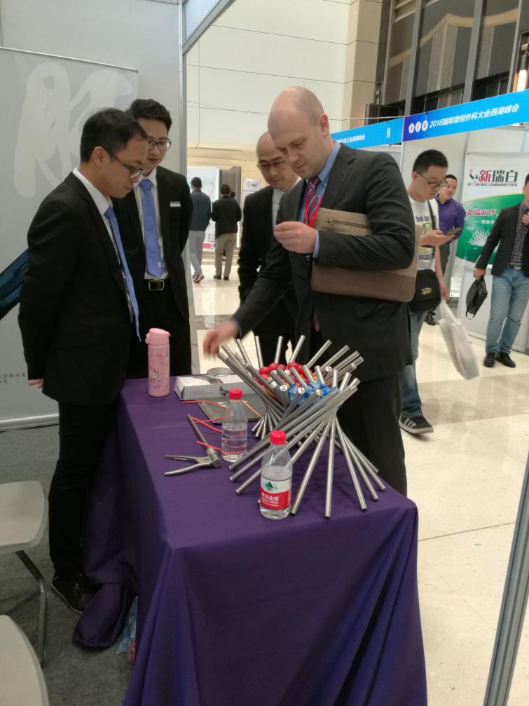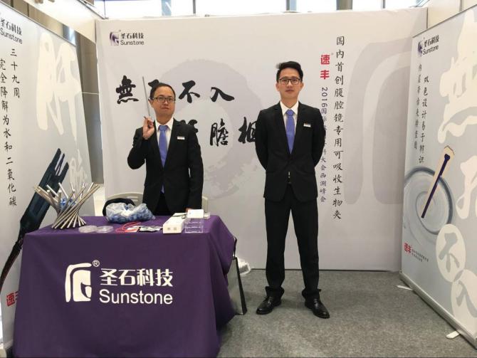 會議茶歇期間,我公司展位吸引了眾多專家醫(yī)師們的關(guān)注,其中有來自英國皇家英格蘭外科學院的專家代表前來了解我公司產(chǎn)品---速豐?可吸收止血結(jié)扎夾,現(xiàn)場我司工作人員欣然以嫻熟的英語為其做介紹與產(chǎn)品演示,我公司產(chǎn)品的特點及優(yōu)勢得到了英國皇家英格蘭外科學院專家的認可與肯定!